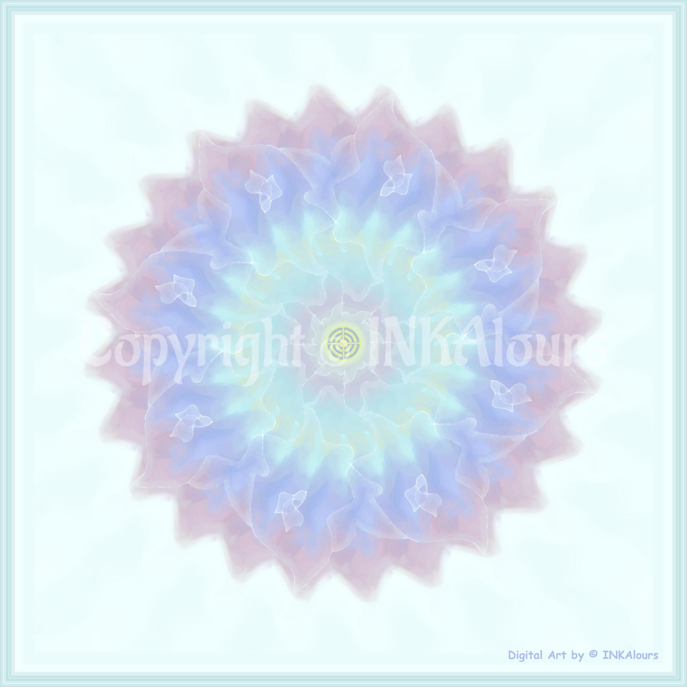 When I was about 12 years old I got my hands on my first book about Atlantis,I was very intrigued and read it in one breath.I was a very sensitive child and the world around me often seemed unfair,harsh and sad. So I often escaped into a world of imagination,to places of gentle energy and soft colours,where love and peace flowed.Reading the book reminded me of a place I was convinced in my heart of hearts existed.The Atlantis Mandala is an expression of the gentleness and energy I encountered in my imagination.