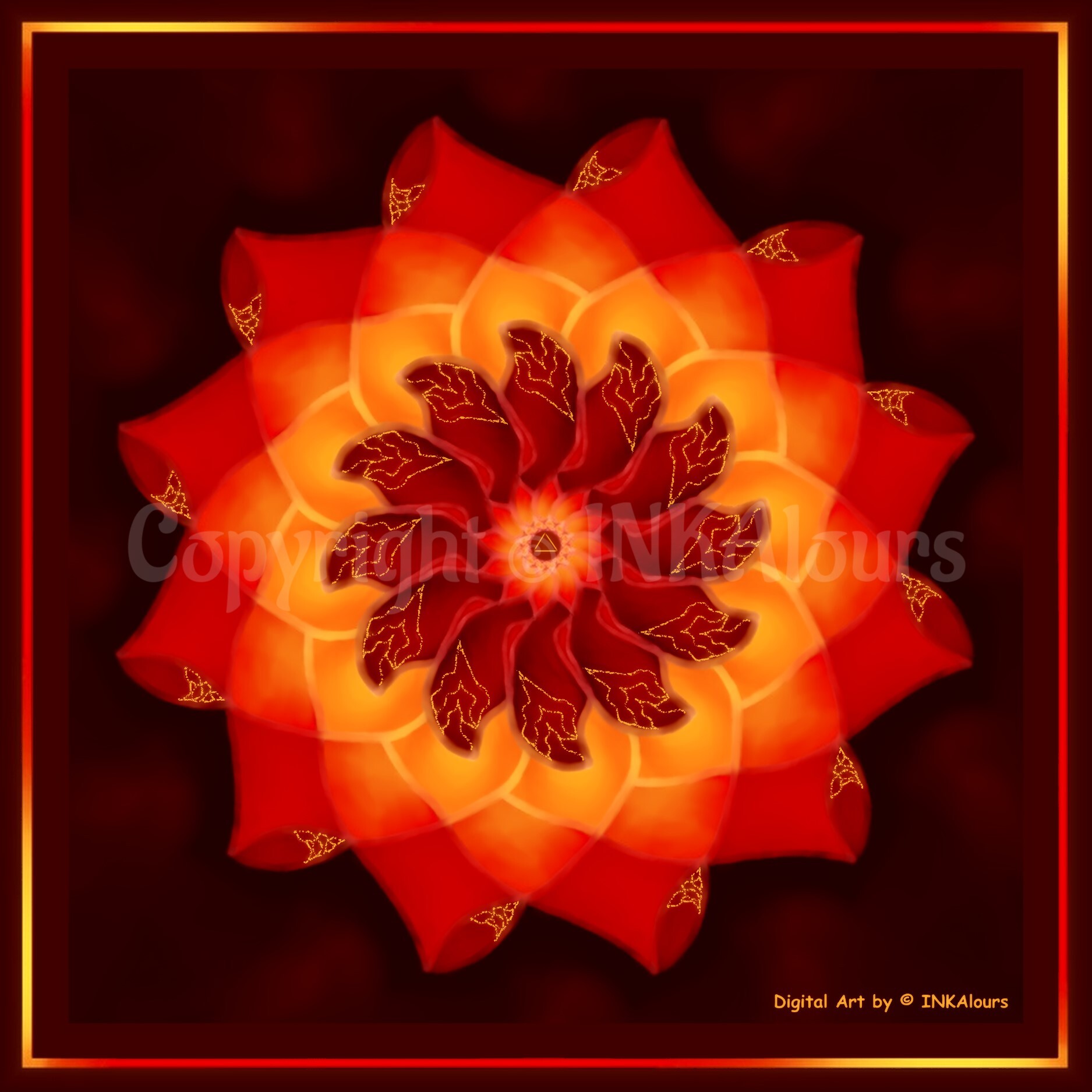Downloadable file is a video with an animated mandala of the element FIRE, with a Solfeggio frequency of 528 hz and the sound of fire.