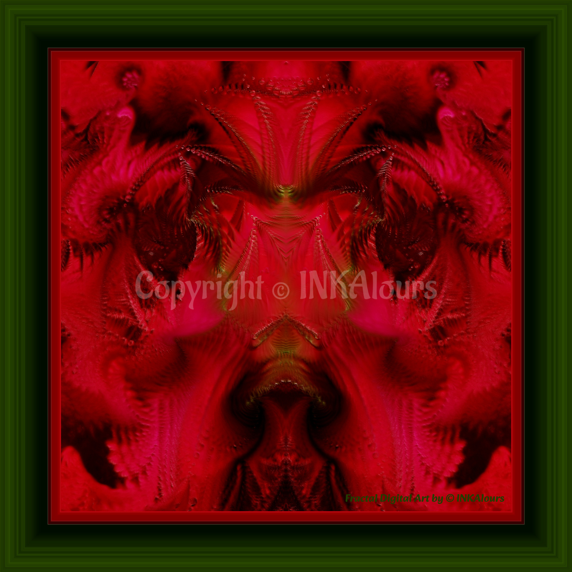 Tento fraktální obrázek vyzařuje teplo a sílu, a pracuje s ohněm jako partnerem a pomocníkem. Jeho ohnivé vzory symbolizují odvahu, vášeň a odolnost. Meditace s tímto obrazem nás povzbuzuje k tomu, abychom čelili výzvám, začali pracovat na našem osobním růstu a integrovali moudrost, která se vynořuje z plamenů transformace.
