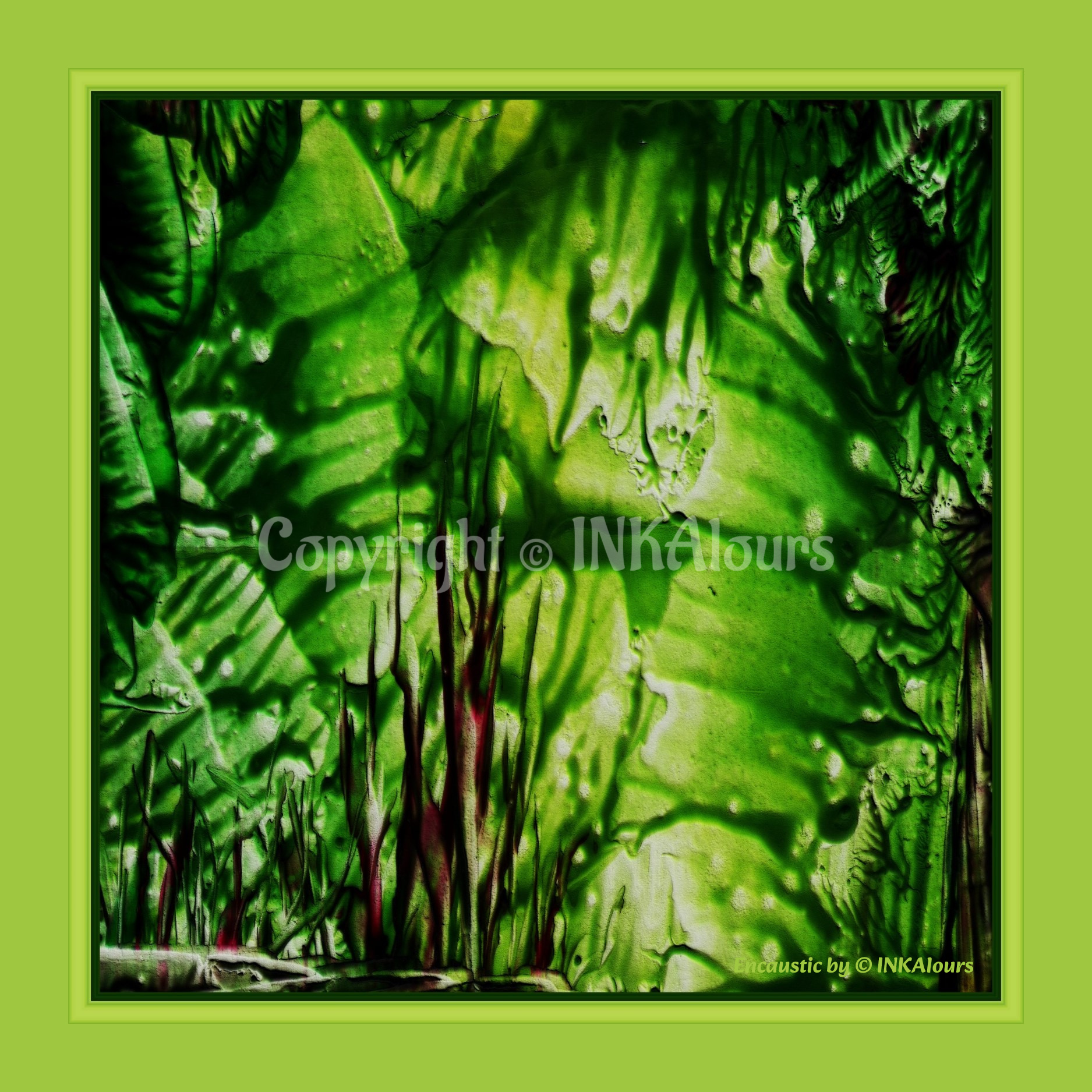 Enkaustika sama o sobě dává člověku možnost vidět v konečném výsledku dál,než byl původní úmysl.Je to podobné jako v životě,neboli na cestě hledání sebe sama,když se snažíme rozklíčovat to,co je pod povrchem a co není na první pohled patrné.